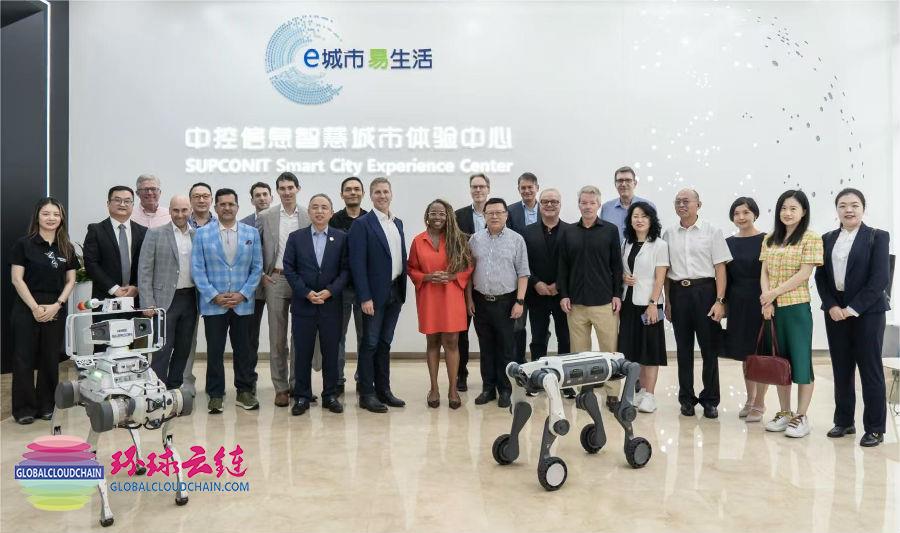 代表团来到中控信息,驻足观看人工智能和具身智能技术领域的创新成果,深入了解中控信息将无人机、四足机器狗等智能无人系统应用于城市治理实际场景的案例,并提出了与芝加哥城市运行相关的安全巡逻、应急处置等多元场景结合的需求和设想。