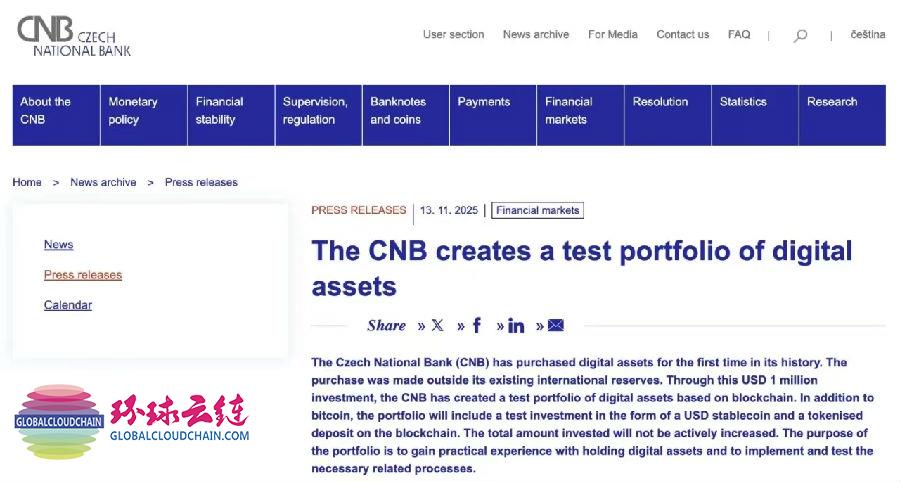 首先需要明确的是,捷克央行的这一举动并非一次鲁莽的投机或政策上的急转弯。该投资组合总额仅为100万美元,在其庞大的总资产中占比微乎其微,约为0.0006%。根据捷克央行官方发布的博客文章,这一决定由银行董事会于2025年10月30日批准,其性质被严格定义为一项“实验”。