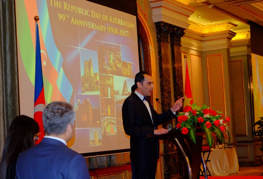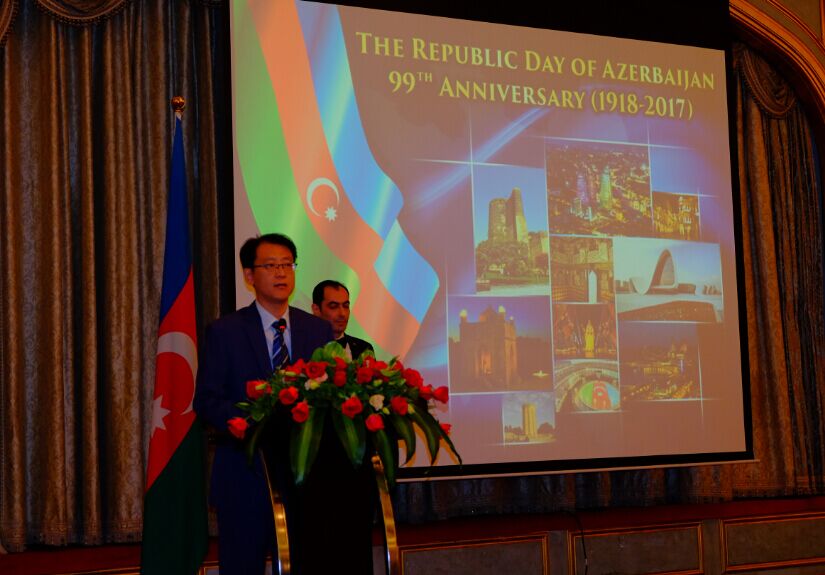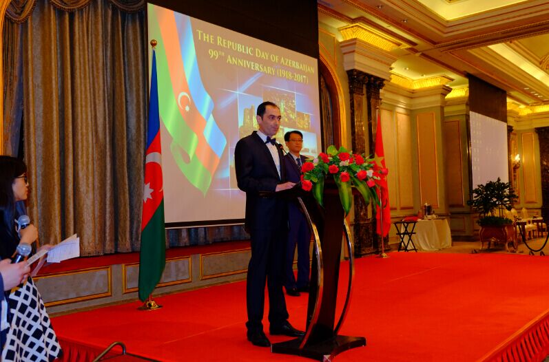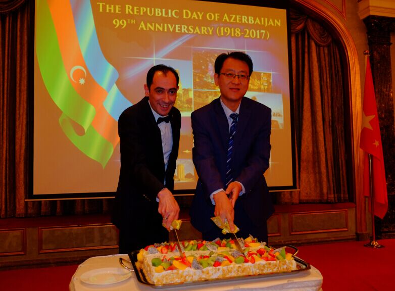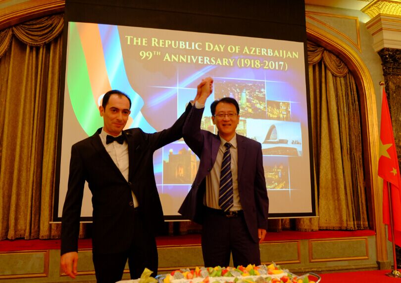 2017年5月24日,庆祝阿塞拜疆民主共和国成立100周年招待会北京隆重举行。阿塞拜疆驻华使馆代办马汀·米尔咂耶夫先生出席并致辞。中国外交部欧亚司参赞樊荣先生代表中方出席并致辞。