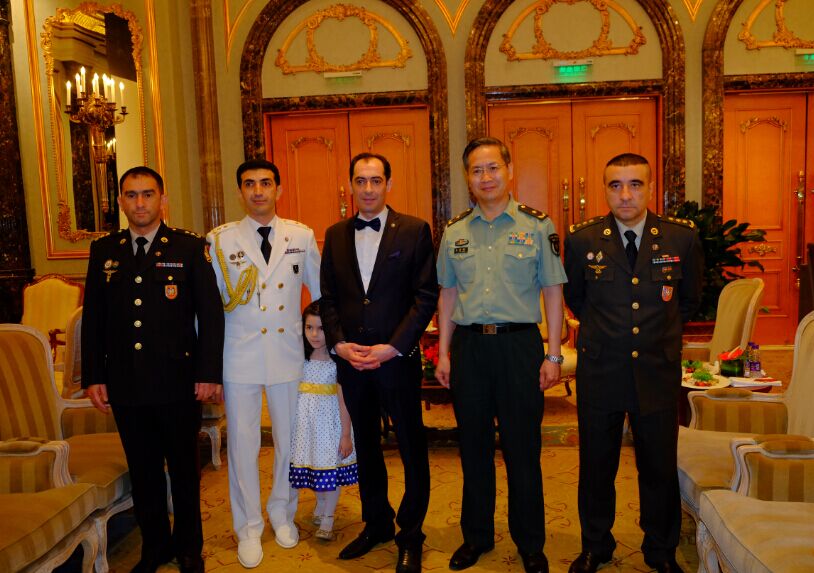 阿塞拜疆驻华使馆代办、驻华武官和中国武官合影共庆中阿友谊和世界和平