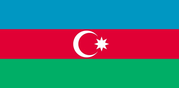 阿塞拜疆共和国(Republic of Azerbaijan)国旗呈横长方形,长与宽之比为2:1。由三个平行的横长方形相连而成,自上而下分别为浅蓝、红、绿三色。红色部分中间有一弯新月和一颗八角星,月和星均为白色。蓝色代表里海,也是突厥传统的颜色。红色代表进步与光明的未来,绿色象征高加索山。弦月与星星代表伊斯兰教,星星的八道光芒象征国内八个突厥部族团结一致。