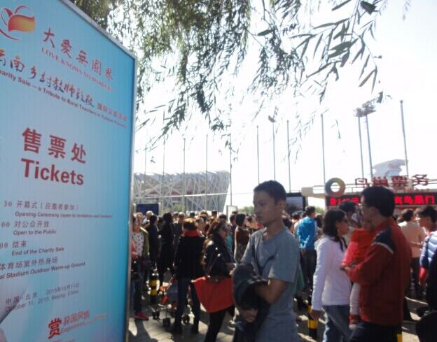 义卖活动售票处,从一大早开始,就排了长龙,闻讯前来购买异国产品,领略异国风情,热心捐助、参加义卖活动的社会各界人士,市民小孩等耐心排队,等候入场。2-3小时的等候,容纳了社会各界人士对异国风情的好奇心,对贫困偏远地区教师的爱心与关切。