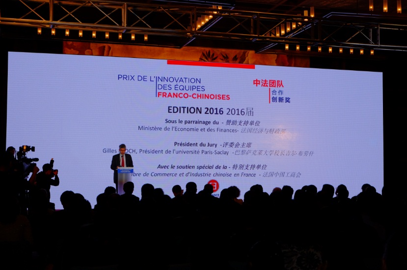 在大会的最后环节,巴黎萨克雷大学校长吉尔·布劳什先生 (Gilles BLOCH)主持了法中委员会主办的第三届中法团队合作创新奖的颁奖仪式 (Prix de l’innovation des Equipes franco-chinoises)。今年的“中法团队合作创新奖”同时也是法国商务投资署“创新法国”系列推广活动的一项组成部分。本年度的中法团队合作创新奖共收到了超过170名工程师参与的24个报名项目,分别来自初创企业、中小企业以及大型企业。评委会在24个项目中最终选取了10个项目入围决赛。