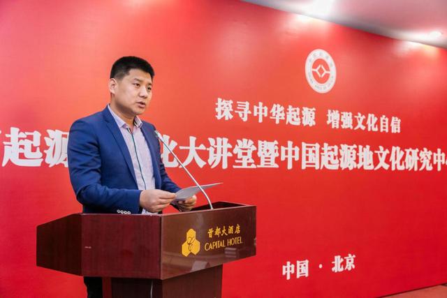 中国起源地文化研究中心执行主任李竞生宣读“中国起源地文化研究中心章程”。他进一步介绍说:“伴随着中国起源地文化研究中心的成立,中国起源地文化大讲堂今天也正式开讲。”